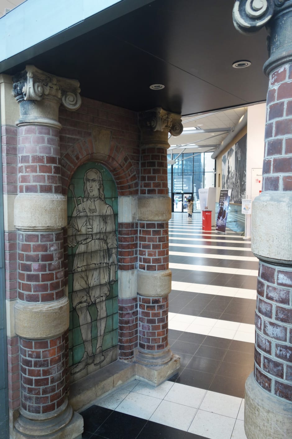 Gebouw-H en gebouw-E op de Roeterseilandcampus zijn een toonbeeld van jaren negentig-architectuur. In de hal van het E-gebouw staat echter een poortje met gebakken aardewerken tegeltjes dat doet denken aan lang vervlogen tijden. Waar komt dat vandaan?