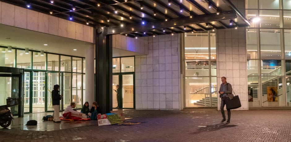 Al ruim twee weken slapen actievoerders buiten voor de Stopera. Met dit protest proberen de demonstranten aandacht te vragen voor de asielcrisis. UvA-student Pelle Nelissen is een van hen. ‘Wij hebben het privilege om hier te slapen en zo gewoon naar huis te gaan.’