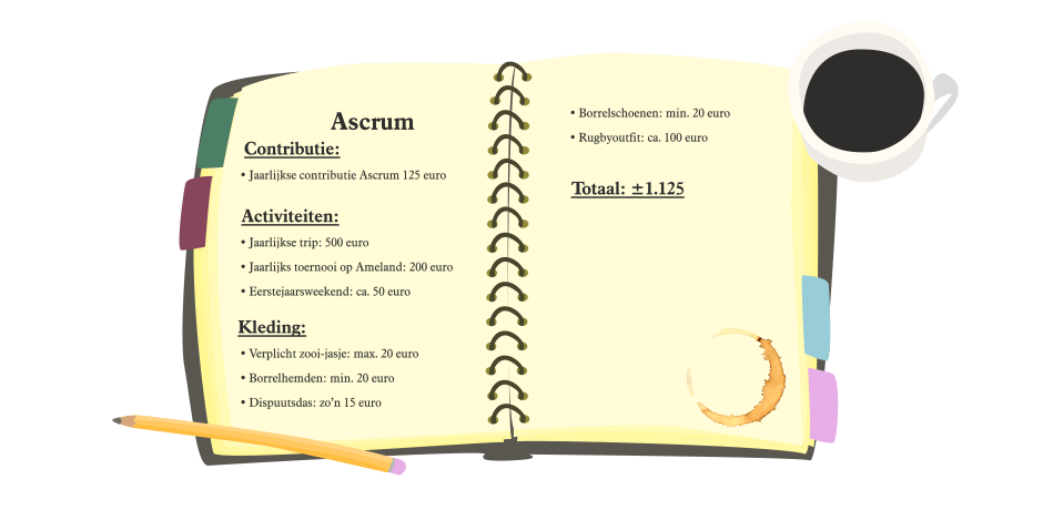 It would be nice to have some insight into the costs involved. Of course, these can vary from year to year and partly depend on what each person wants to spend on associations. But to give you an idea, Folia lists the finances of three student associations: a large one (A.S.C/A.V.S.V, the combination of fraternities/sororities called ‘The corps’, 2,700 members), a medium-sized one (student association Unitas, over 500 members) and a small one (student rugby club Ascrum, 150 to 200 members). What does it cost to be an annual member of these Amsterdam student associations?