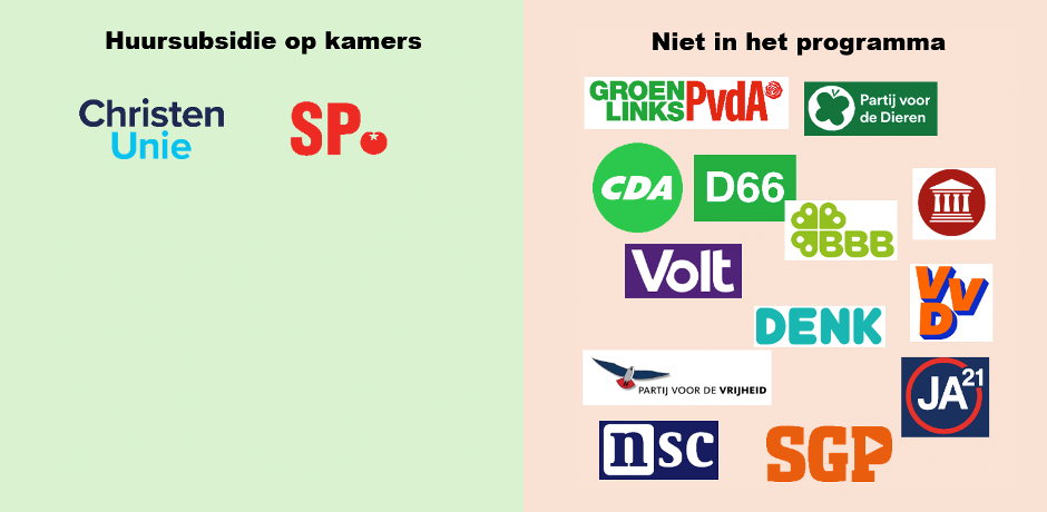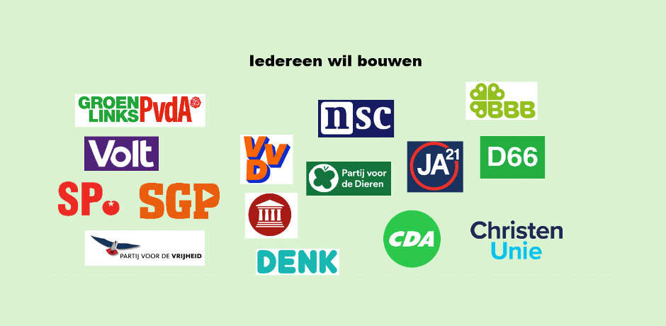 Alle partijen willen meer huizen bouwen. Sommige noemen expliciet studentenwoningen, andere hebben het over jongeren en starters. En ja, de Partij voor de Dieren legt meer nadruk op duurzaamheid dan pakweg BBB en CDA, maar zulke verschillen liggen in de lijn der verwachting.