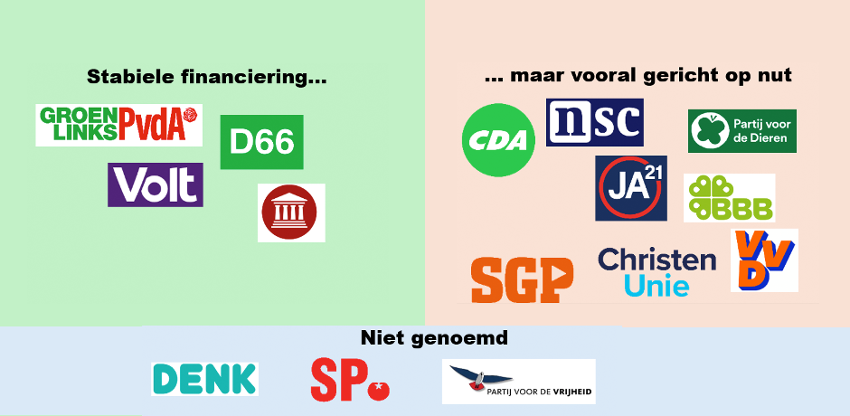 Wij verdelen de partijen steeds in twee groepen. Dat is soms een beetje zwart-wit, dus lees vooral de toelichting.