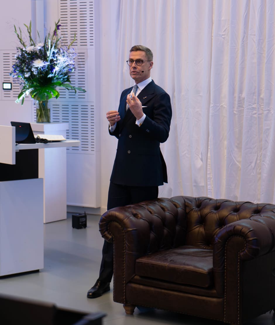Tijdens zijn lezing plaatste Stubb de huidige oorlog in Oekraïne in een bredere verschuiving van de mondiale machtsverhoudingen. Hij schetste hoe de wereldorde op dit moment verschuift van een structuur na de Tweede Wereldoorlog waar een paar grote landen veel invloed hadden, naar een werkelijkheid waarin meerdere machten bestaan. In zijn lezing pleitte hij voor een specifiek soort samenwerking: ‘We moeten multilaterale samenwerking terugbrengen, waarbij meerdere landen samenwerken binnen een systeem van regels en instellingen.’ Dit is vergelijkbaar met hoe de Europese Unie is ingericht.